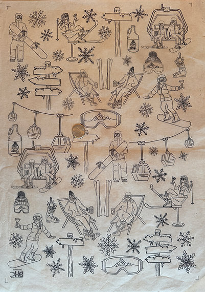 Après Shred Is a playful winter sports themed design by Beth Harden Ceramics