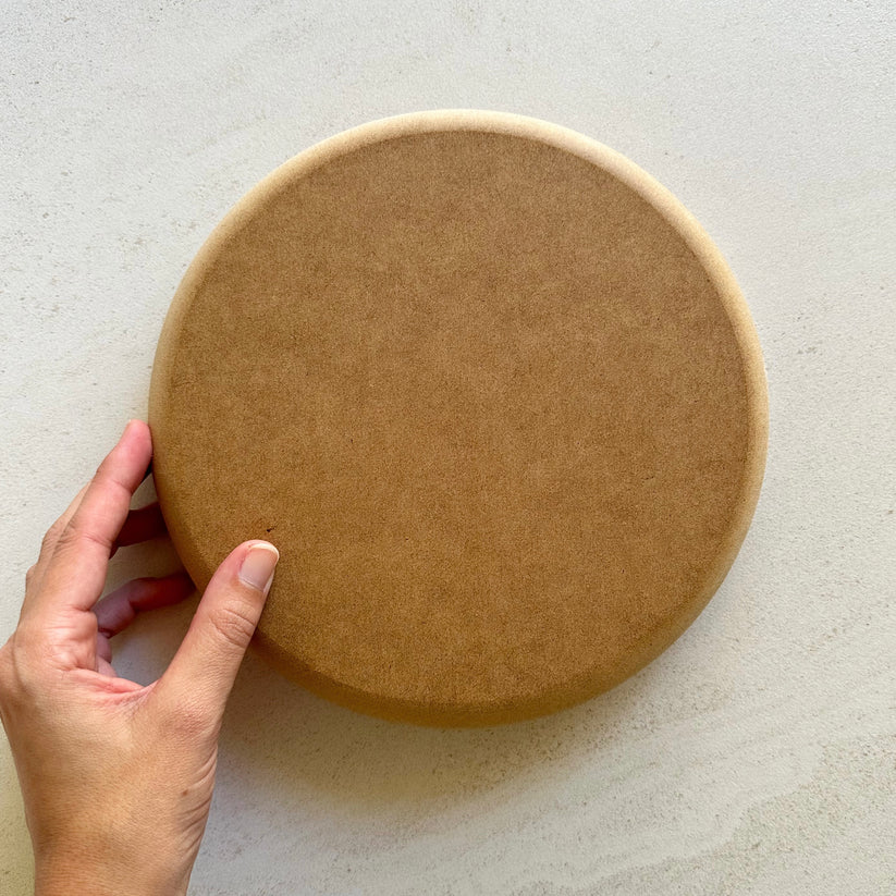 Form is 22cm in diameter, 3.2cm thick (twice as thick as our other moulds), and contains a threaded metal insert in order to attach the Base/Handle which can be purchased separately here.
