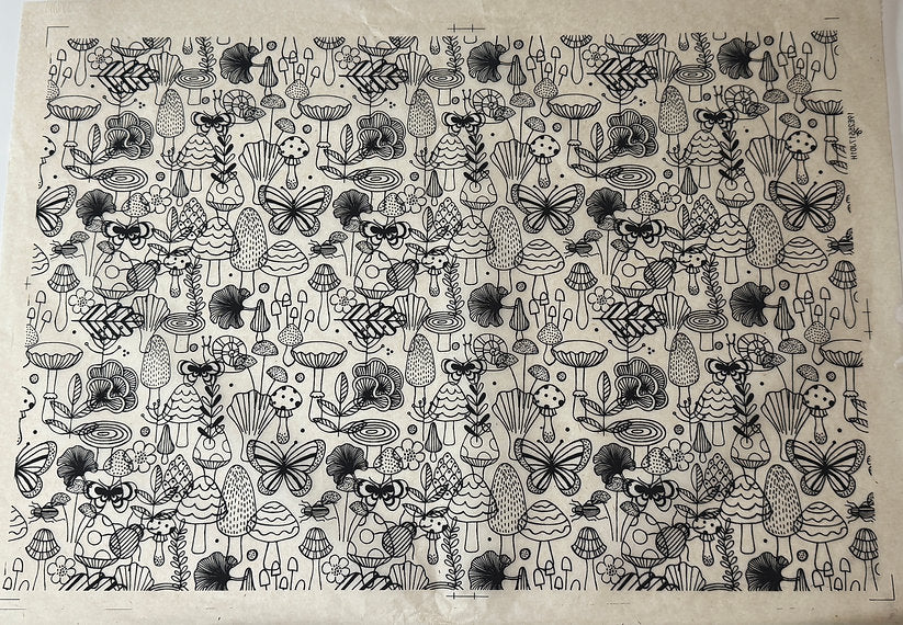 Fungi Forest is a collection of stylized mushrooms this design gives off colouring book vibes with this fun foresty fungi, floral and bug combo.